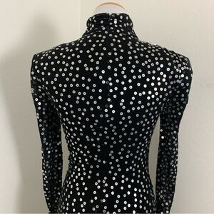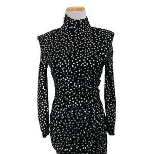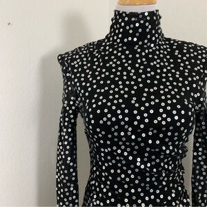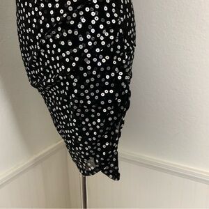 Cinq A Sept Marlene Mini Dress. Women’s size 4. Black With Silver Sequins. Ruched Side. Back zip closure. Measured flat and unstretched. Dress has all-over stretch. Armpit to armpit is 13.5 inches. Waist is 10.5 inches. Total length is 37 inches. Excellent preowned condition. Free of rips, holes or stains.