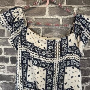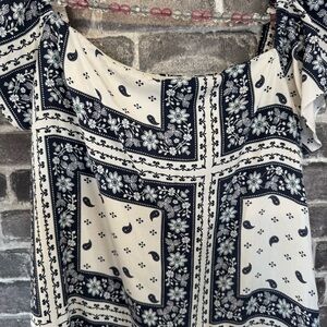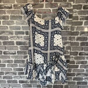 Cinq A Sept Minella Dress Off the Shoulder mini layered white blue printed