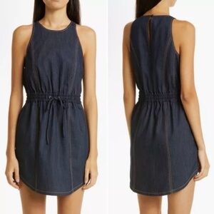 Cinq A Sept Ruba Shirred Waist Sleeveless Denim Mini Dress Women's Size 10.