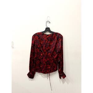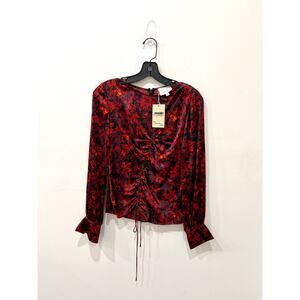 Cinq A Sept Satin Ezrah Keyhole Floral-Print Ruched Silk Blouse Red Womens Sze S