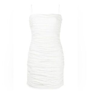 Cinq A Sept Vance White Ruched Sleeveless Square Neck Mini Dress