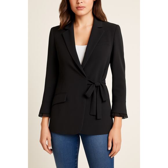 Cinq A Sept Wrap Tie Blazer Jacket Black Large 5 a 7 Business Work Formal Dressy