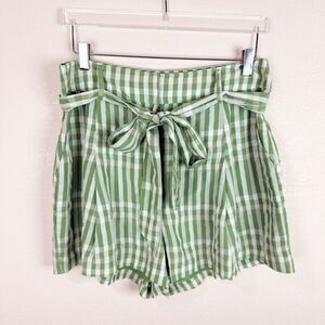 Cinq A Sept Green Plaid Paper Bag Shorts Silk Size 12