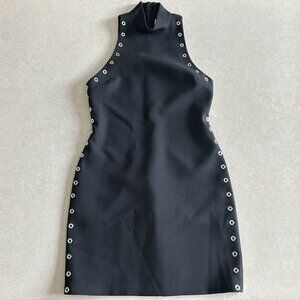 Cinq à Sept Ava Mock-Neck Crepe Grommet Dress ASO Isabelle Lightwood