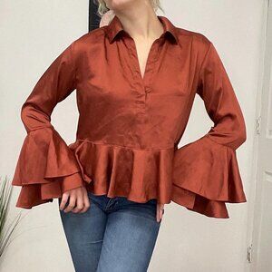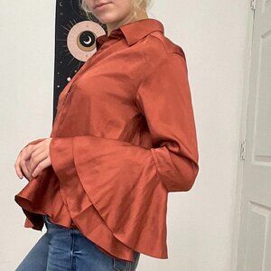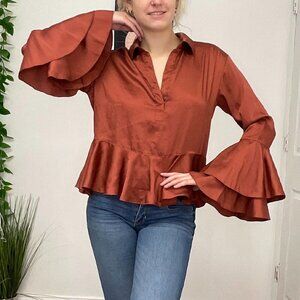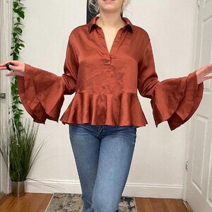 Cinq à Sept Bell Sleeve Casual Loose Shirt Blouse Size XS Brown