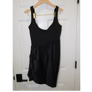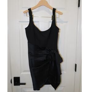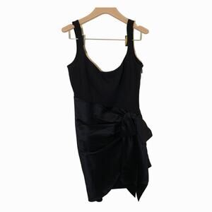 Elegant black mini dress with a stylish bow detail. Perfect for evening wear.