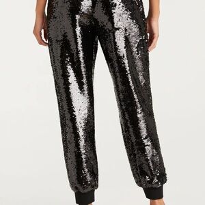 ✨ Cinq à Sept Black Sequin Jogger Pants – XS ✨