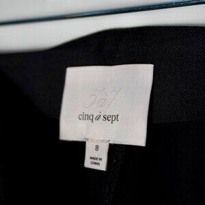 Black tailored pants by Cinq à Sept, featuring a slimming cut with vertical center seams down the front that visually elongate the legs. The design is minimalist and polished, sitting at a mid-to-high rise with a hidden side zipper closure at the hip for a smooth, streamlined fit. Perfect for sophisticated office wear or an evening out.