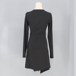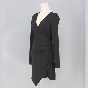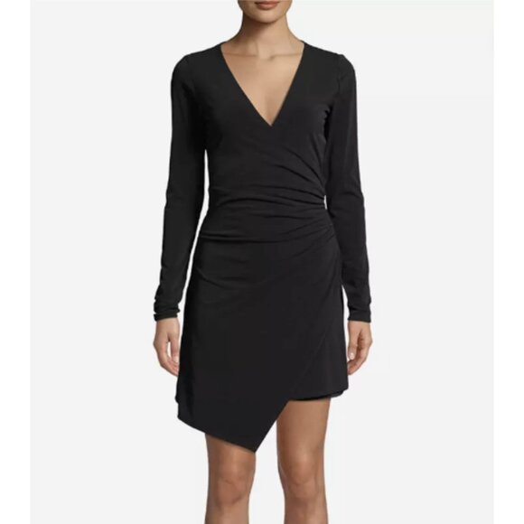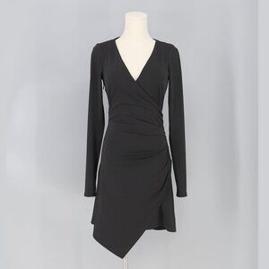 Cinq à Sept Coralie Mini Dress in Black Fitted Wrap Cinched Asymmetric V-neck Size XS