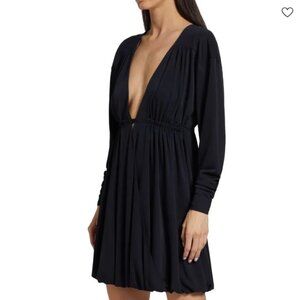 The Destiny dress from Cinq à Sept is styled with a plunging V-neckline and long sleeves in a mini length.