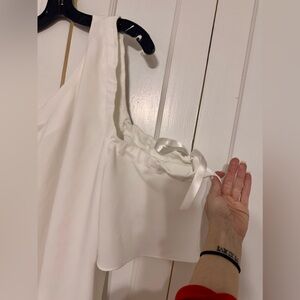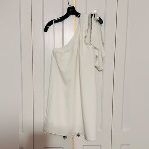 A swingy trapeze silhouette lends an effortless feel to this single-shoulder Cinq a Sept dress. A ribbon tie cinches the flutter sleeve. Lined. Fabric: Mid-weight crepe. Shell: 69% triacetate/31% polyester. Lining: 100% polyester. Dry clean