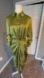 Keywords: Sinq a Sept, Jacey dress, silk shirtdress, moss green, ruched sleeves, tie waist, knee length, collared, spring fashion, women's dress, size 6, 3/4 sleeve, elegant, semi-formal, silky