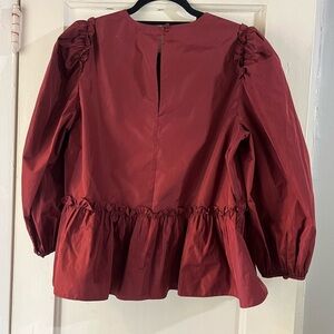 Cinq À Sept Jackie Satin Ruffle Top in Sangria M