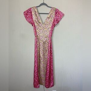 Cinq à Sept Jessica Midi Pink Yellow Dress Floral Stripe Wrap Size 0