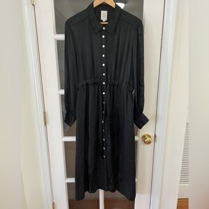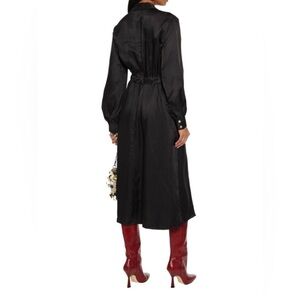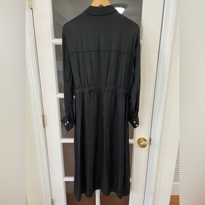 Cinq Sept Joyce Cupro Satin-Twill Midi Shirt Dress - Size 12 - black - pre owned - excellent condition