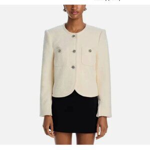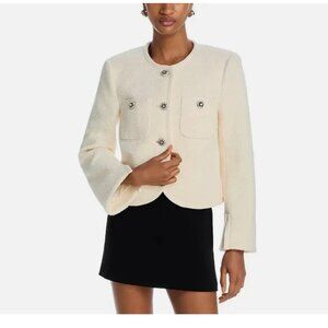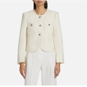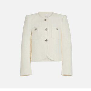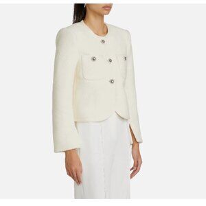 Crafted of a teddy bouclé, Cinq à Sept's Junia jacket is styled with a crewneck, chest button-through patch pockets, and button-front closure.