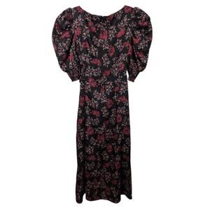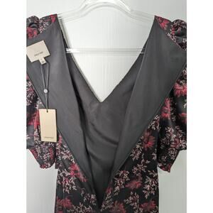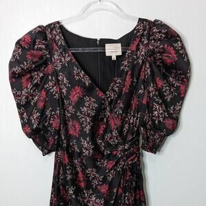 Cinq à Sept Kacy Midi Dress Floral Faux Wrap Silky Black Pink NWT Size 2