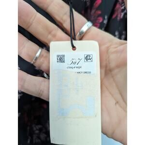 The Cinq à Sept Kacy dress brings romantic sophistication with a whimsical edge. Its puff sleeves, faux-wrap silhouette, and bold floral print balance dark romance with feminine charm. Perfect for weddings, cocktail parties, or date nights, this dress captures Cinq à Sept’s signature blend of modern glamour and playful detail.