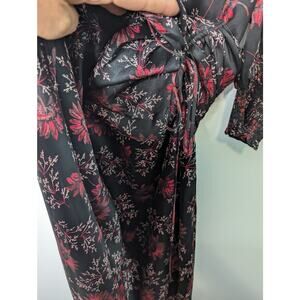 Cinq à Sept Kacy Floral Faux Wrap Silky Midi Dress Black Pink NWT