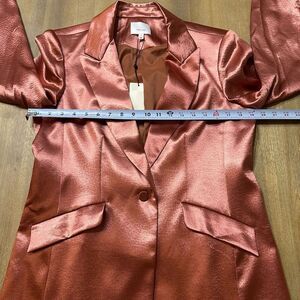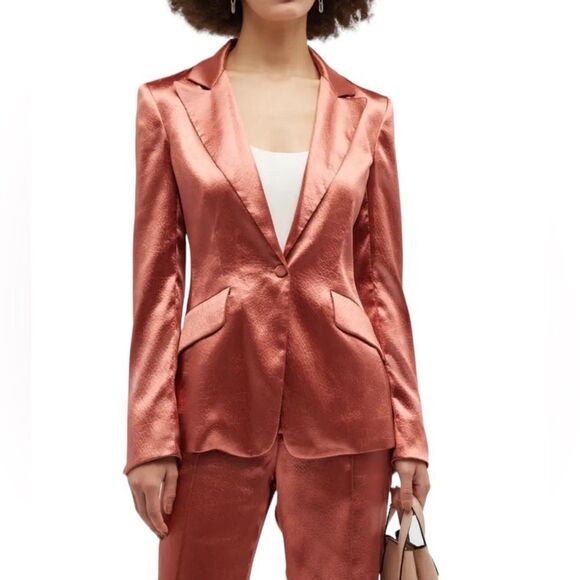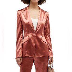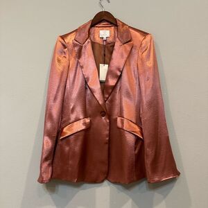 Cinq à Sept Karis Tailored Textured Metallic Satin Blazer Size 10 Copper Pink