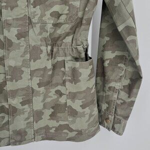 Cinq à Sept Ladies Camouflage Jacket. Size S Button Close Cinch Waist Pockets