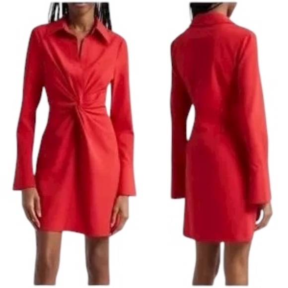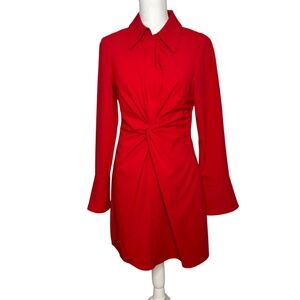 Cinq à Sept McKenna Knot-Front Long Flare Sleeve Red Mini Shirtdress Womens 8