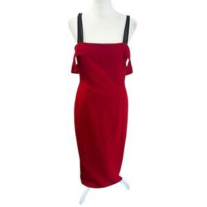 Cinq à Sept Nova Red Off-Shoulder Midi Cocktail Dress Size 8 | Celebrity Worn