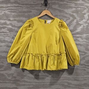 Cinq À Sept SZ S Jackie Puffy Sleeve Ruffle Trim Loose Fit Regencycore Blouse