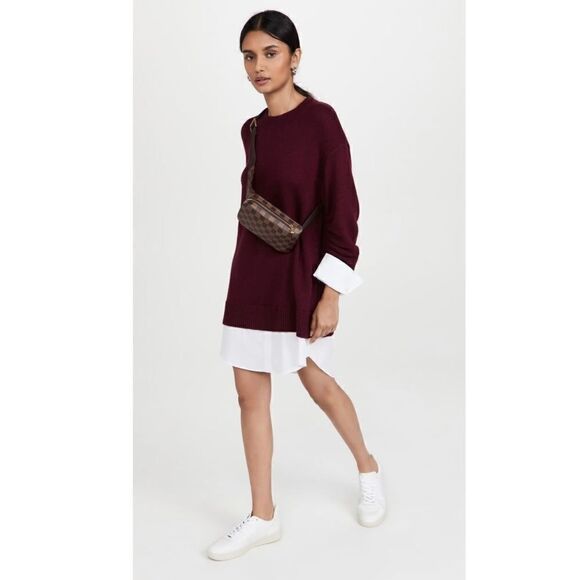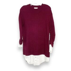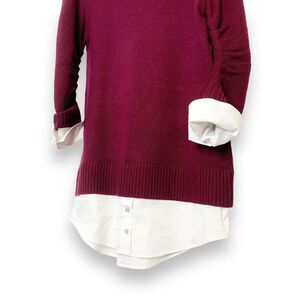 Cinq à Sept Santina Dress Burgundy Red Shirt Sleeves/Hem Sweater Dress Womens XS
