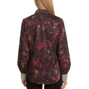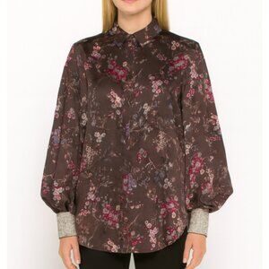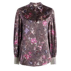 Cinq à Sept 'Selina' Sakura Floral Crystal-Cuff Blouse Top, Asphalt Multi