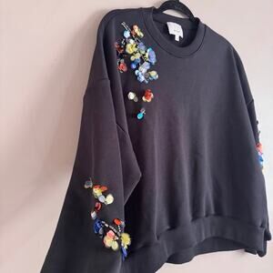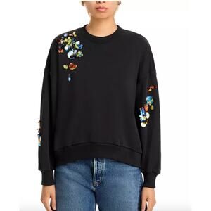 Cinq à Sept Sequin Flower Embellished Black Pullover Crewneck Brandy Sweatshirt