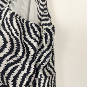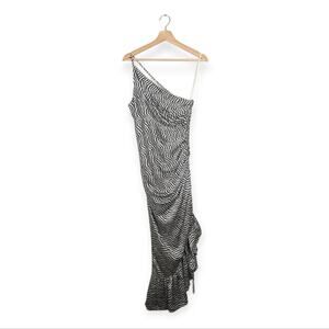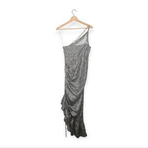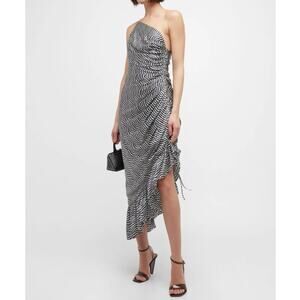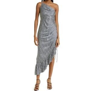 Cinq à Sept Silk Christel Ivory Navy Asymmetrical One Shoulder Dress Size 2