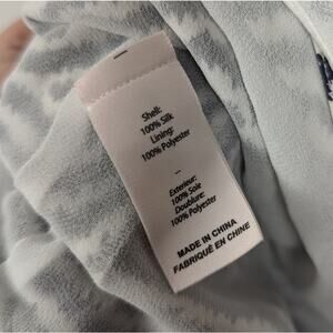 Cinq à Sept Silk Christel Ivory Navy Asymmetrical One Shoulder Dress. A mesmerizing print and one-shoulder silhouette lend modern charm to a lustrous silk dress fashioned with adjustable side ties and an asymmetric ruffle hem. One-shoulder neck. Sleeveless. 100% Silk. 100% Polyester lining.