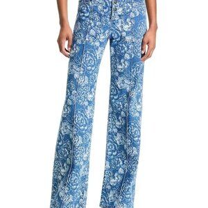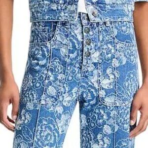 Cinq à Sept Sketchbook Floral Vivian High Rise Jeans Indigo Blue White Pants 6