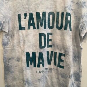 Cinq à Sept Tie Dye Tee. “L’Amour De La Vie” printed on the front. Size XS. 100% cotton