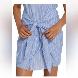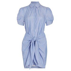 Cinq à Sept 'Tira' Linen-Blend Tie-Waist Striped Dress, Chambray Blue/Ivory