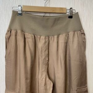Cinq à Sept Tous Les Jours "Gilles" Satin Cargo Joggers – Tan/Beige, Size L