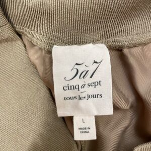 The Gilles Jogger by Cinq à Sept from the Tous Les Jours line is a masterclass in relaxed sophistication. This version comes in a versatile tan/beige satin finish, perfect for effortless styling. The cargo-style joggers feature a wide, high-rise ribbed waistband and ankle cuffs in a tonal knit, combining utility and comfort in one sleek silhouette.