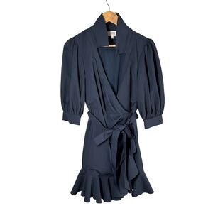 Cinq à Sept Vickie Wrap Ruffle Mini Dress Size US 4 Navy