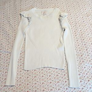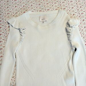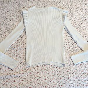 Elegant white sweater with ruffle details. Long sleeves. Perfect for layering.