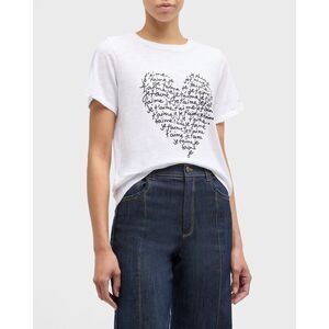 Cinq à Sept Women's White Je T'aime Heart Crewneck Short Sleeve Top Size Large