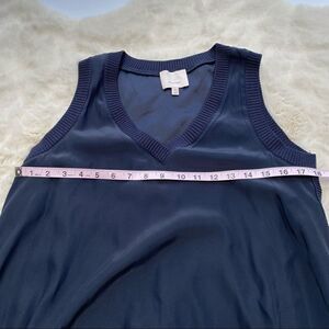 Cinq à Sept 100% Silk Sleeveless V Neck Top Dark Navy Blue Tank Shirt XS