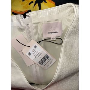 Faux leather minidress with textured embossed patterning and a tonal buckle belt.