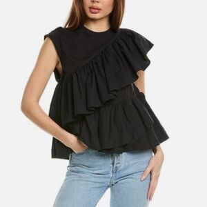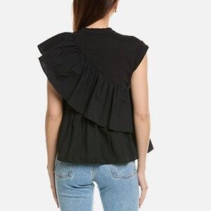 Cinq a Sept 5a7 Micki Woven Ruffle Layer T-Shirt - Black Ruffle Cocktail
