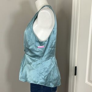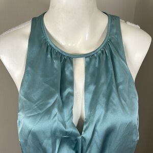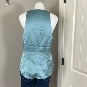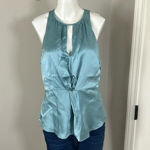 Cinq a Sept Amari Twist Front Cutout Silk Top Green Blue Ravine Career Sz L NEW
