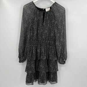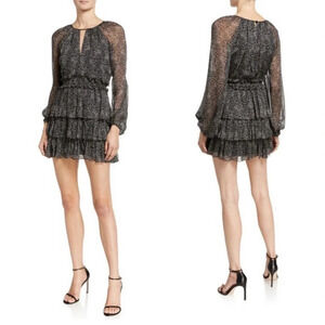 Cinq a Sept Annabel 100% Silk Dress Floral Printed Tiered Ruffle Georgette Mini Length Long Sheer Sleeves Cocktail