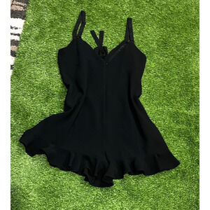 Cinq a Sept Audrey Romper Black Adjustable Flounce Hem Women's Sz. L