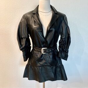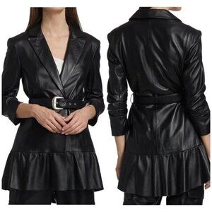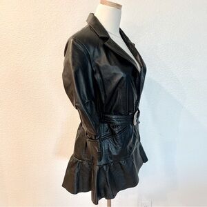 🖤 Cinq a Sept Black Genuine Leather Skirted Ruffle Peplum Belted Blazer Jacket
