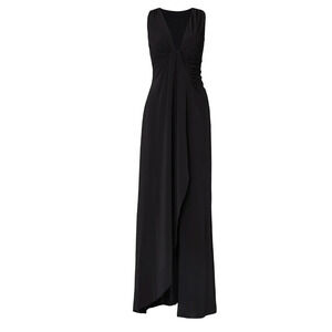 Cinq a Sept Black Plunging Gown XS Sophisticated Twist Front Formal High Slit Designer $595