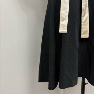 Size 8. Lightly worn hat in good condition. Black and cream colored material. Ruffle sleeves. Keyhole cutout along chest and tie straps along neckline. Zips up the back. Refer to pictures for measurements.